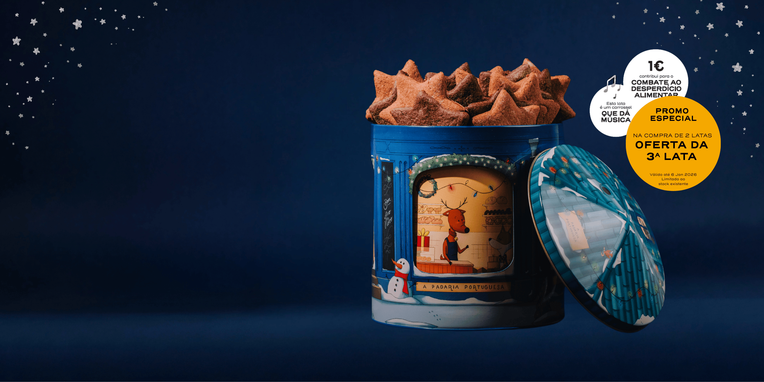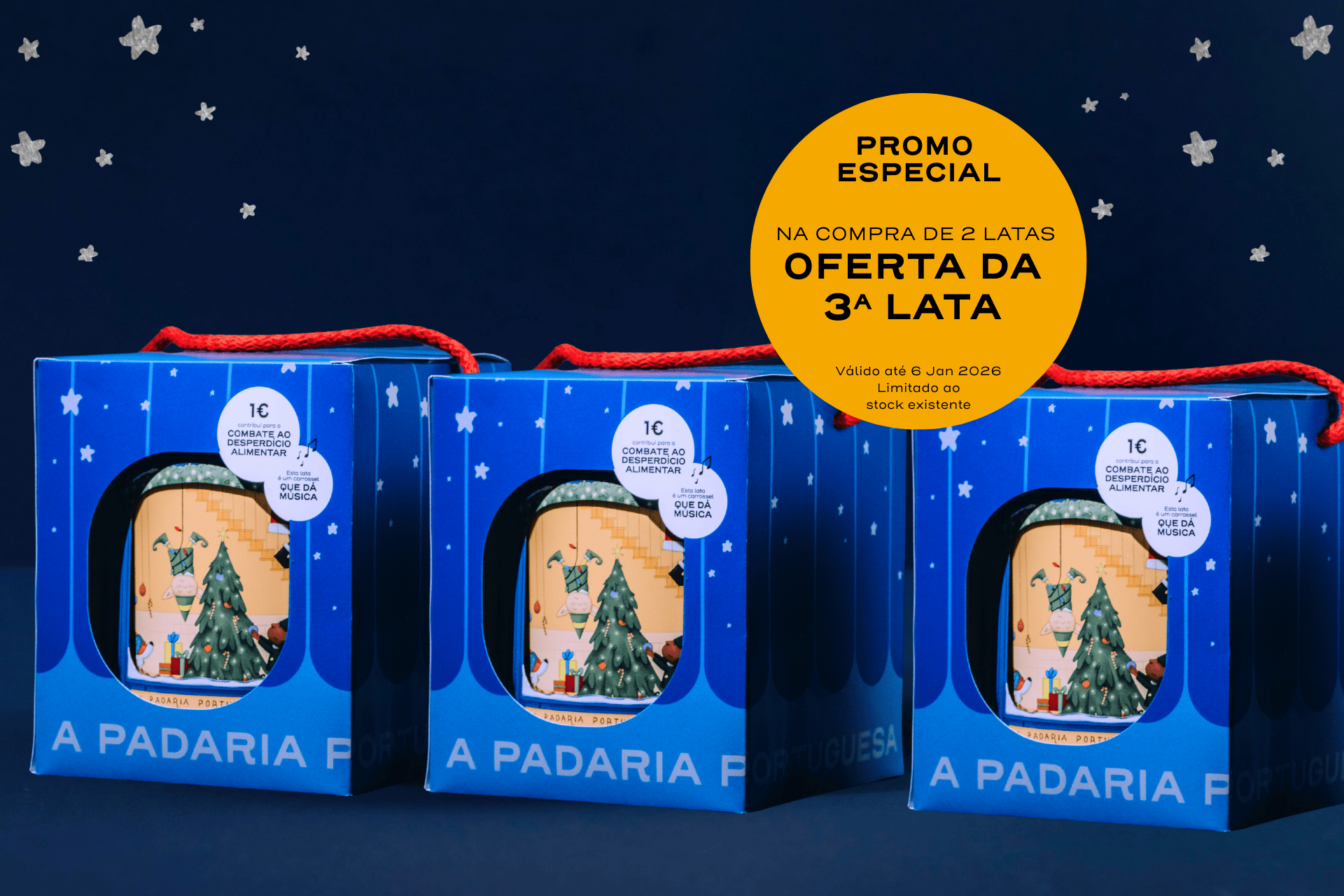 Agora, na compra de 2 Latas de Natal, oferecemos 3ª. Só até 6 de janeiro!